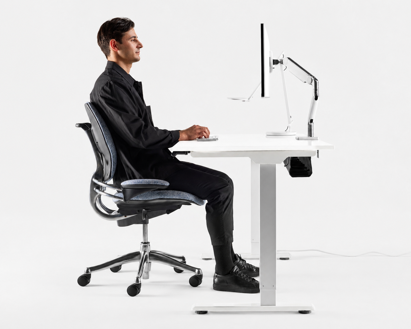 התאמה אישית לאורך כל היום: השולחן מאפשר מעבר קל בין ישיבה לעמידה, מה שתורם להפחתת ישיבה ממושכת – אחת מהגורמים המרכזיים לכאבי גב ולבעיות בריאותיות הקשורות לאורח חיים בעבודה ממושכת מול מחשב.