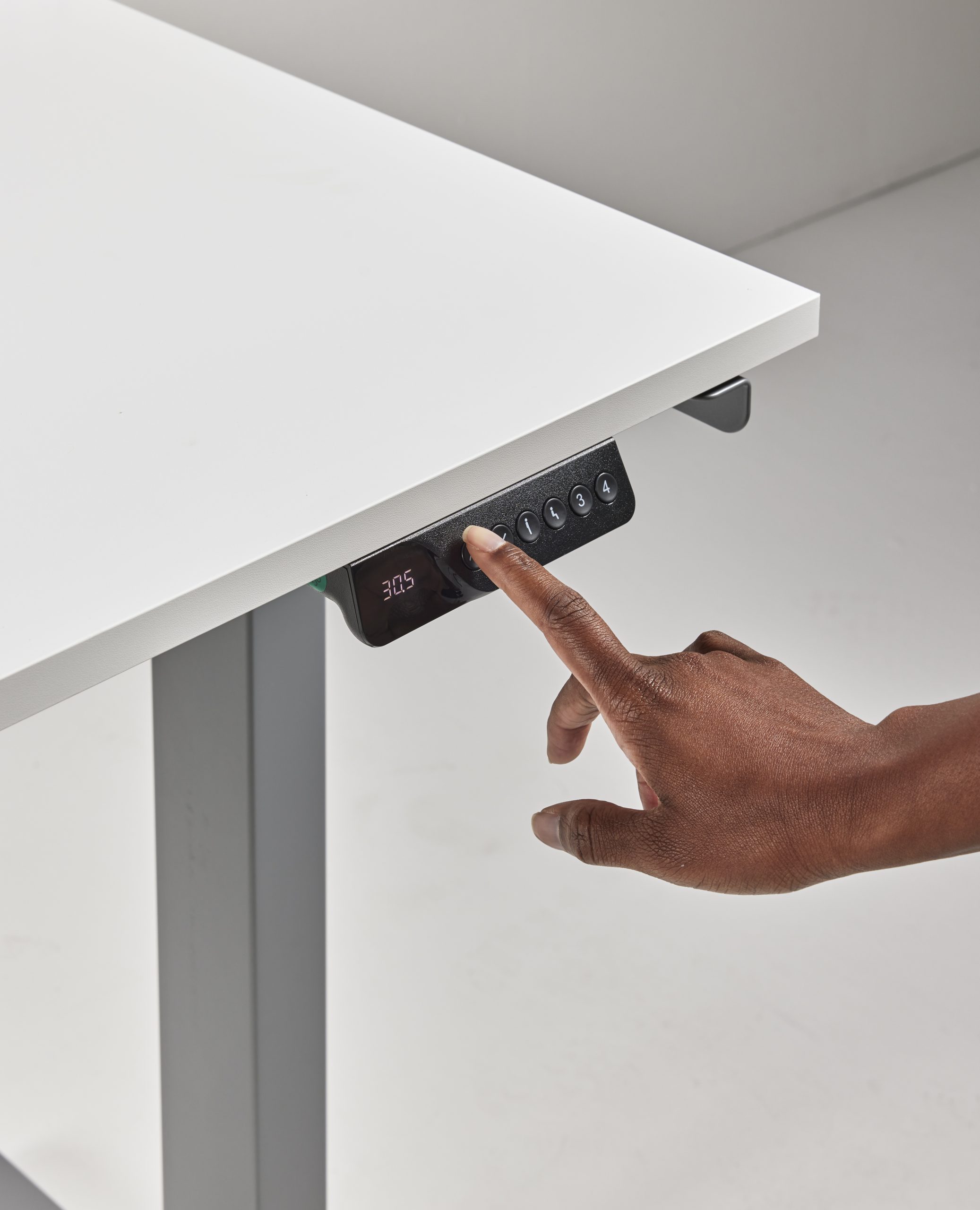 פאנל שליטה מתקדם: לוח שליטה דיגיטלי עם אפשרות תכנות ארבעה מצבי גובה שונים כולל יציאות USB-A ו-USB-C מובנות – כך שאפשר גם לחבר ולהטעין מכשירים ישירות מהשולחן.