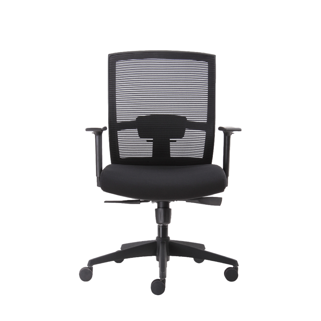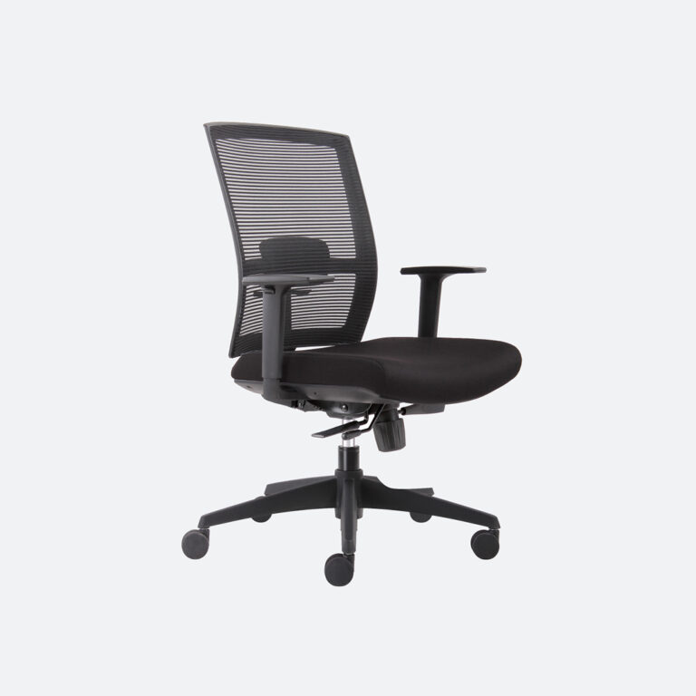 גב רשת שחור, מושב מרופד בבד שחור, בסיס שחור