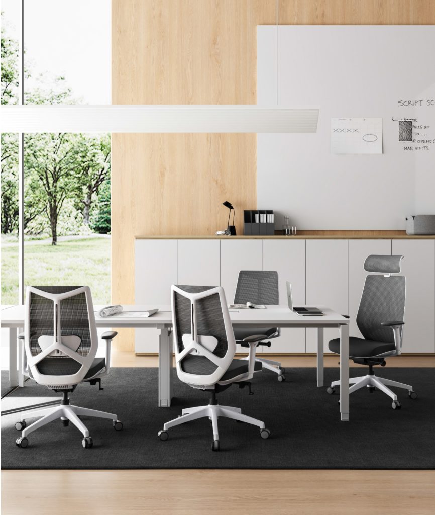 • עיצוב גב ייחודי – גב הכיסא מתוכנן על בסיס שלושה קווים מרכזיים שיוצרים תנועה טבעית בגב ומעניקים תמיכה ארגונומית לכתפיים ולגב