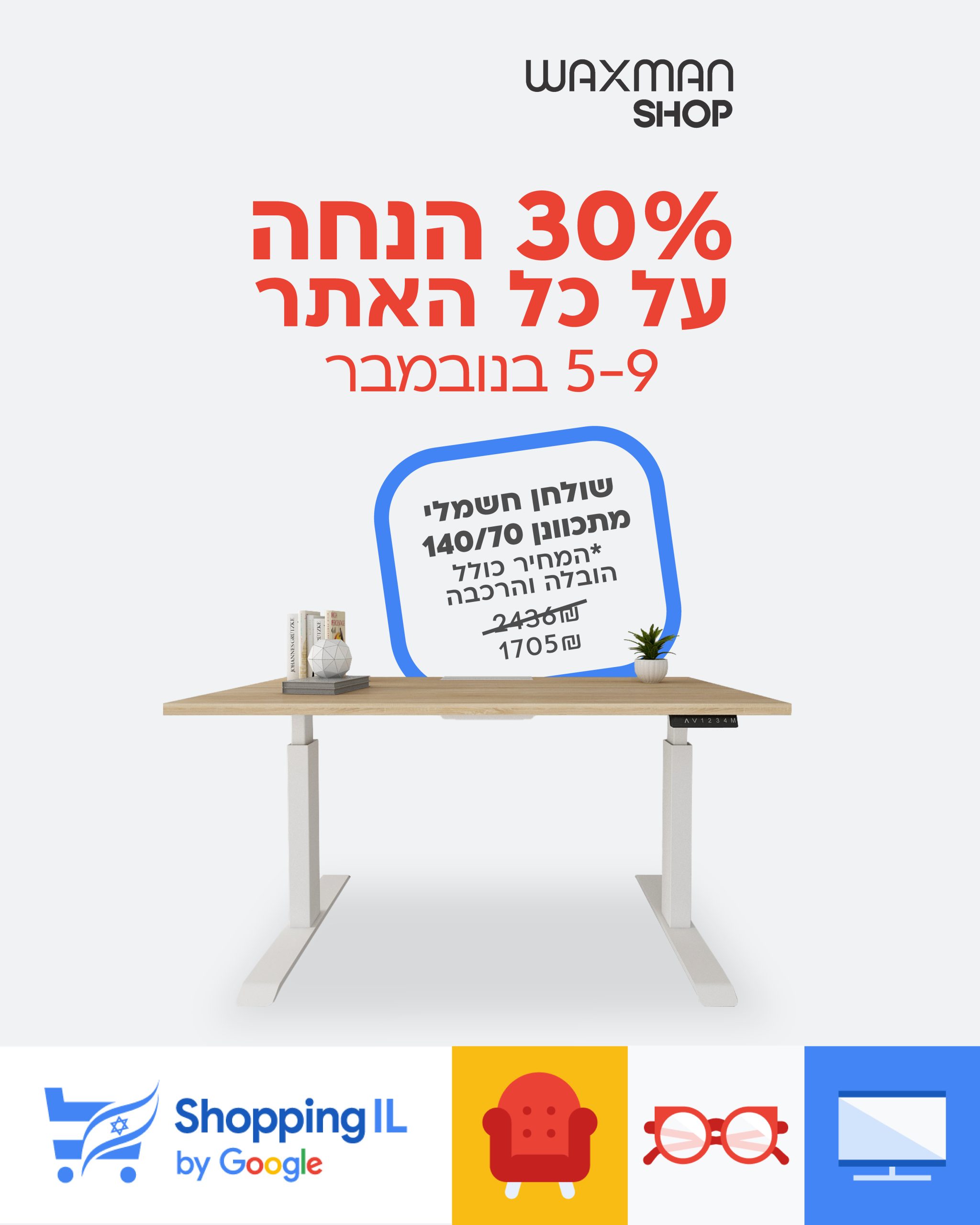 חג הקניות הישראלי יוצא לדרך, ואנחנו ב-Waxman Shop מציינים אותו בהטבה יוצאת דופן: